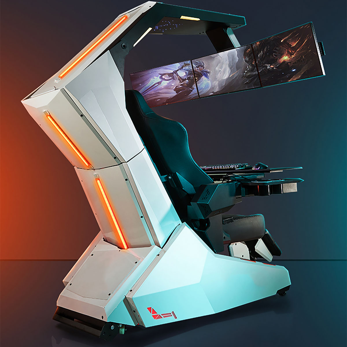 The IW-R1 PRO chair comes with a single monitor bracket and standard triple monitor brackets.